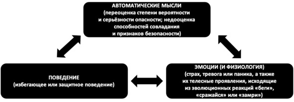 – психофизиологическая модель – тревога является результатом катастрофической трактовки мозгом физиологических ощущений, испытываемых в различных органах и системах организма («Я катастрофически интерпретирую физические симптомы, следовательно, тревожусь»).3