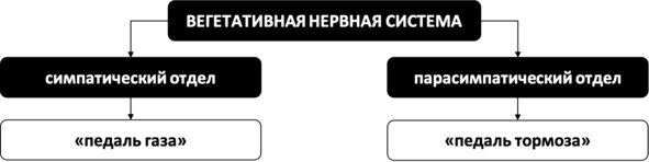 Автономный отдел нервной системы называется вегетативная нервная система, которая, в свою очередь, подразделяется на симпатический и парасимпатический отделы. Если симпатический отдел отвечает за мобилизацию организма при реальной или даже представляемой в мыслях угрозе, то парасимпатический отдел расслабляет организм при отсутствии каких бы то ни угрожающих событий или мыслей о потенциальной опасности (рис. 5).