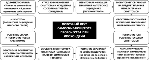 В схематичном виде описанный выше порочный круг самосбывающегося пророчества при ипохондрии выглядит следующим образом (рис. 22):