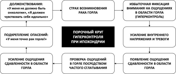 Если рассмотреть данные порочные механизмы на примере страха рака горла, можно получить следующий порочный круг гиперконтроля (рис. 23):