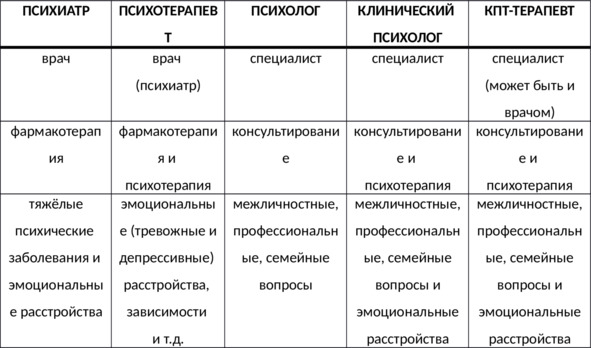– Психотерапевт – тот же врач-психиатр, имеющий дополнительную подготовку по психотерапии и специализирующийся, в основном, на психотерапевтическом лечении эмоциональных расстройств, однако могущий при необходимости задействовать и фармакотерапию.