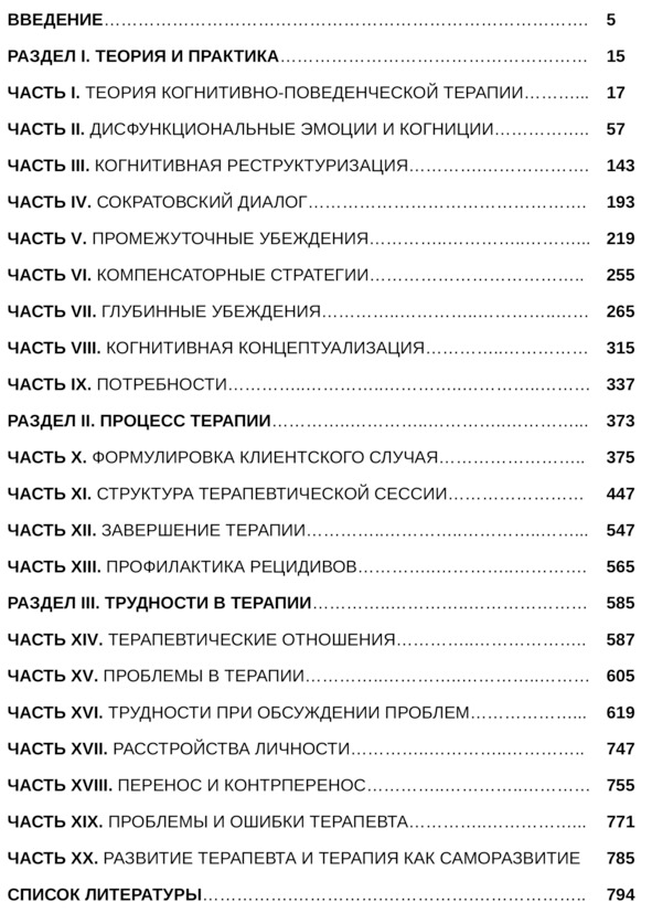 Прежде чем приступать к изучению настоящего практического пособия важно чётко понимать его структуру во избежание возникновения путаницы. Итак, данное пособие состоит из трёх основных разделов: первый – «Теория и практика», второй – «Процесс терапии», третий – «Трудности в терапии». Каждый раздел включает в себя несколько частей, а каждая часть – множество глав. Основой первого раздела «Теория и практика» является теоретический материал одной из предыдущих работ авторов «Система здорового мышления. Сам себе психотерапевт» с актуальными дополнениями и изменениями. Итак, в первом разделе данного пособия описываются основные направления, положения и принципы когнитивно-поведенческой терапии; разъясняется природа и способы выявления дисфункциональных эмоций и автоматических мыслей; выявляются этапы и способы когнитивной реструктуризации, виды и стили диспута, принципы и компоненты сократовского диалога; описываются природа и техники выявления и изменения дисфункциональных промежуточных убеждений, компенсаторных стратегий и глубинных убеждений; разъясняется механизм составления когнитивной концептуализации; раскрывается природа потребностей (в том числе сквозь призму терапии реальностью У. Глассера).