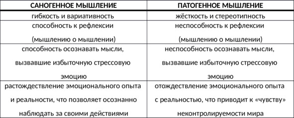 Таб. 2. Отличия саногенного и патогенного мышления