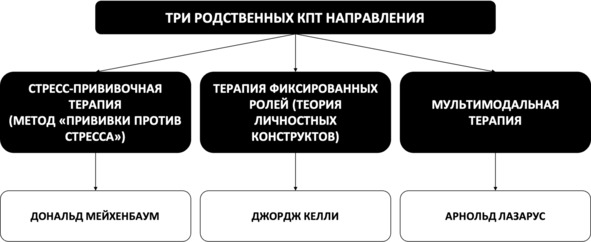 Среди родственных, близких по духу когнитивно-поведенческой терапии подходов можно выделить стресс-прививочную терапию (метод «прививки против стресса») Д. Мейхенбаума, терапию фиксированных ролей (теорию личностных конструктов) Дж. Келли, а также мультимодальную терапию А. Лазаруса (рис. 2).