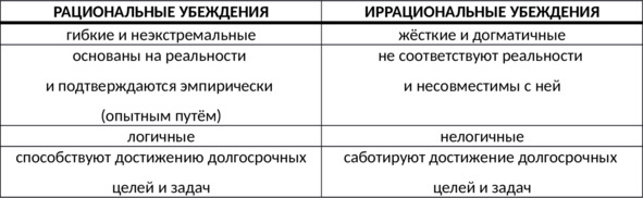 Таб. 1. Отличия рациональных и иррациональных убеждений