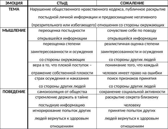 Таб. 9. Сравнительная характеристика стыда и сожаления