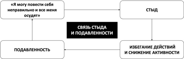 Человек может так сильно стыдиться за свои действия, которые потенциально могут оказаться неправильными, что избегать совершения практически любых действий, что может приводить к подавленности и апатии, выступающих в качестве «профилактики» потенциального разочарования в себе и осуждения других из-за возможного совершения человеком ошибки (рис. 24).