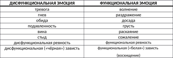 Таб. 23. Качественные отличия дисфункциональных и функциональных эмоций