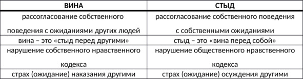 Таб. 11. Отличия вины и стыда