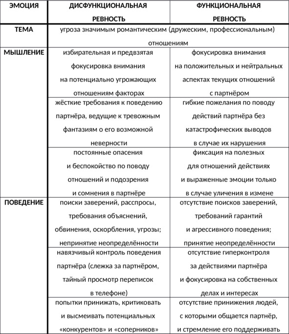 Таб. 12. Сравнительная характеристика дисфункциональной и функциональной ревности