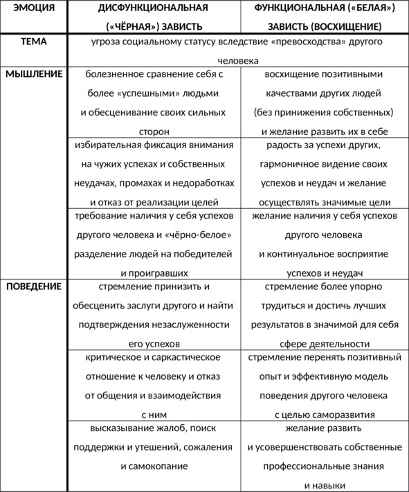 Таб. 13. Сравнительная характеристика дисфункциональной и функциональной зависти