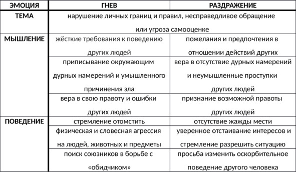 Таб. 6. Сравнительная характеристика гнева и раздражения