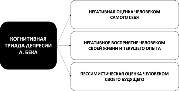 Основатель когнитивно-поведенческой психотерапии Аарон Бек выделил три области депрессивного мышления, образующих когнитивную триаду депрессии, включающую в себя следующие элементы (см. рис. 19):