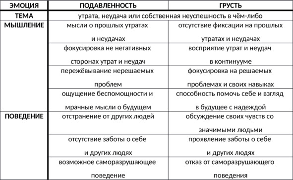 Таб. 8. Сравнительная характеристика подавленности и грусти