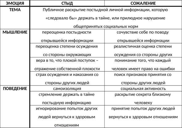 Таб. 10. Сравнительная характеристика стыда и сожаления
