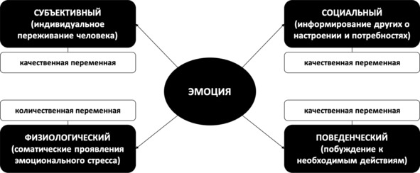 Таким образом, ошибочные представления о реальности способствуют возникновению избыточных негативных эмоций, которые, в отличие от породивших их искажённых мыслей, бессмысленно оспаривать, поскольку любые эмоции говорят вам правду. Действительно, любая эмоция имеет физиологическую и поведенческую составляющие, а также несёт в себе субъективный и социальный смыслы (см. рис. 22).