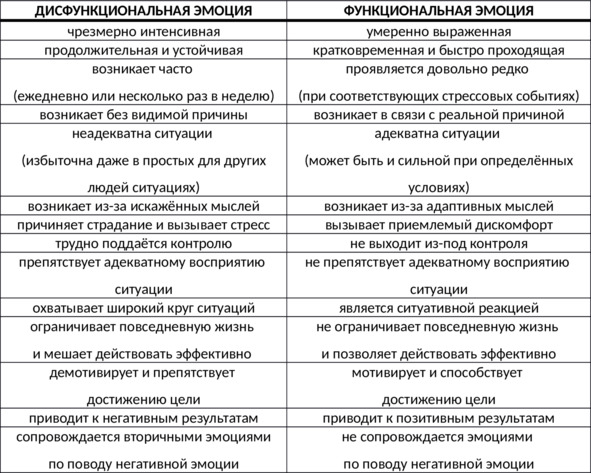 Таб. 11. Критерии отличия дисфункциональных и функциональных эмоций