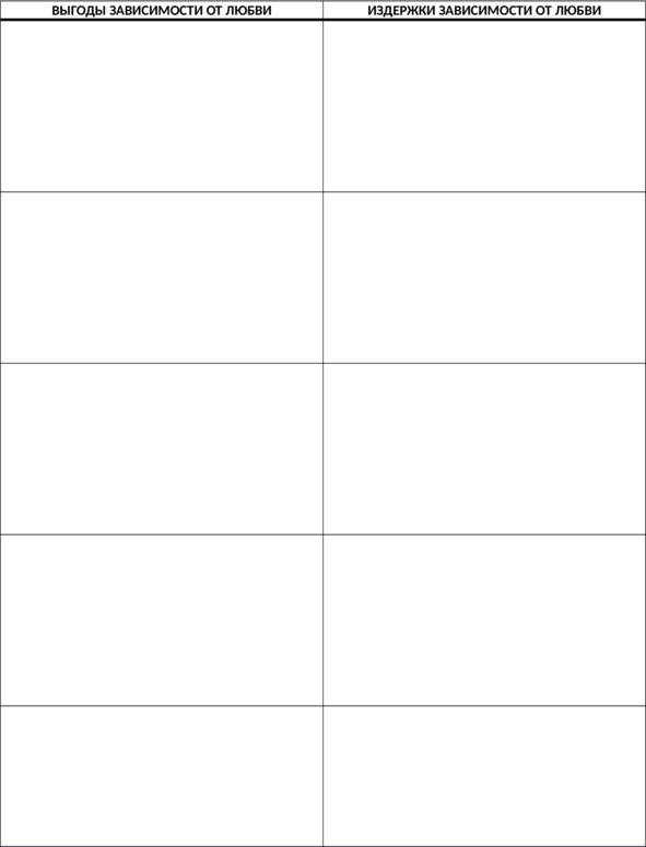 Упражнение 2. Выгоды и издержки зависимости от любви