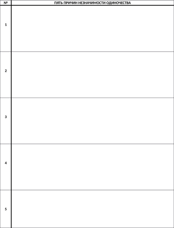 Упражнение 3. Пять причин незначимости одиночества