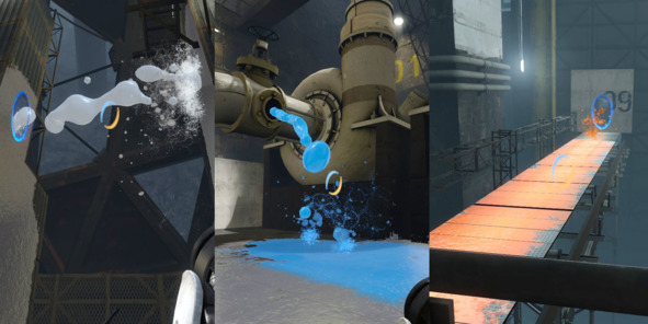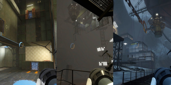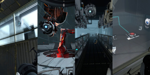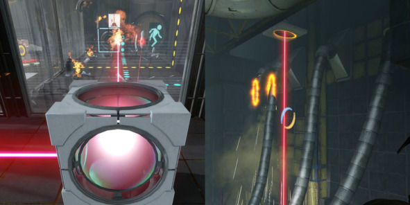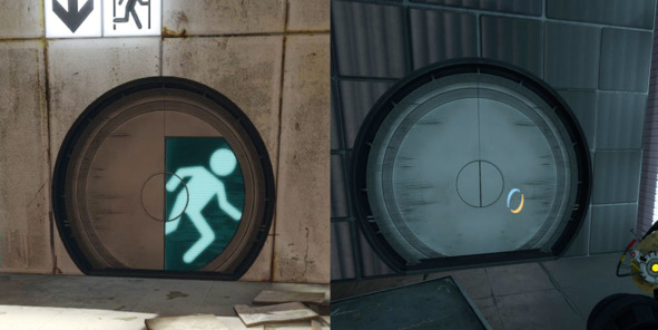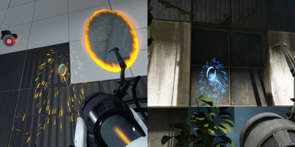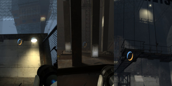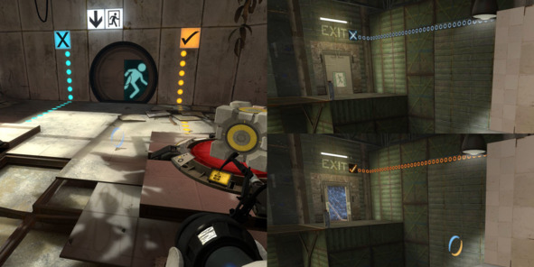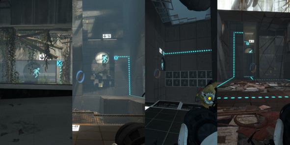 Таким образом, игрок сразу понимает, где можно поставить портал, а где нет, а дизайнеры могут легко контролировать конфигурацию и количество поверхностей для взаимодействия с портальной пушкой.