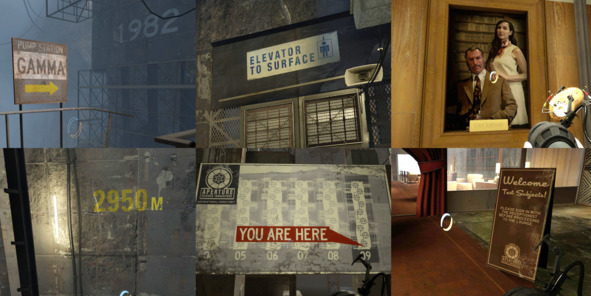 Ещё одна важная функция знаков – подача истории через окружение. К примеру, часть табличек делают акцент на том, насколько глубоко под землёй находится научно исследовательский комплекс, в каком году построили ту или иную его часть и как устроен повседневный быт его обитателей в определенную эпоху.