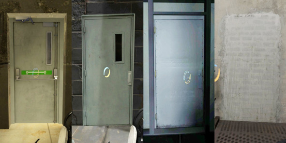 Дверь с выходом маркируется большой светящейся иконкой с бегущим человеком (рис. 1). Дверь, через которую игрок попадает в тестовое помещение, сделана максимально неприметно (рис. 2).