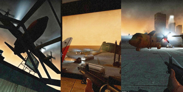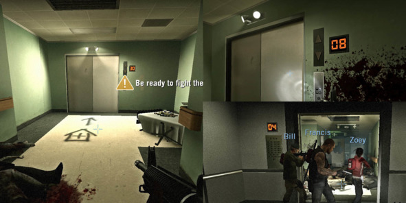 Такой же приём использован в кампании Dead Air, где во вступлении игрокам показывают военно-транспортный самолёт, заходящий на посадку в ближайший аэропорт. Далее этот же самолёт можно видеть из здания терминала. В финале кампании игроки добираются до воздушного судна, заправляют его топливом и благополучно эвакуируются.