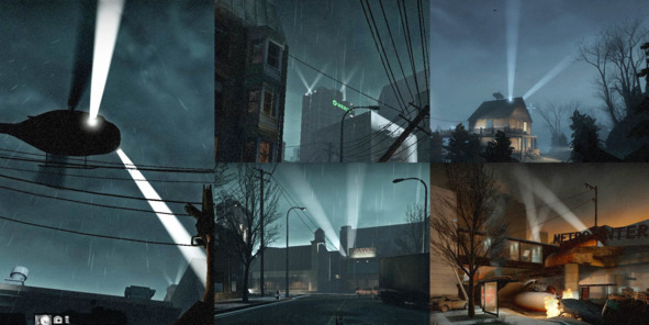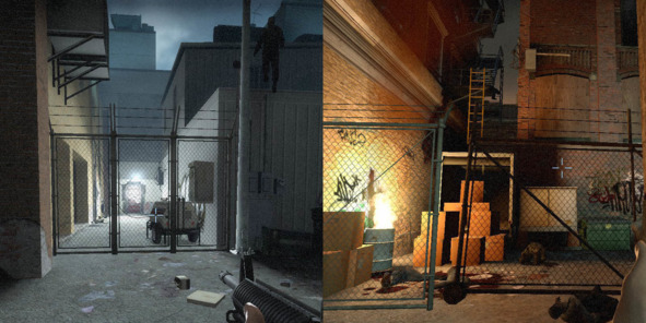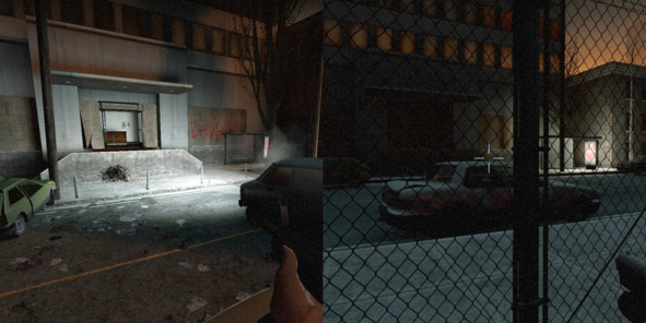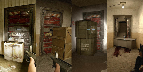 Также при помощи ярких источников света, разработчики привлекают внимание игроков к ключевым проходам. Хороший пример – самый первый уровень кампании Dead Air.