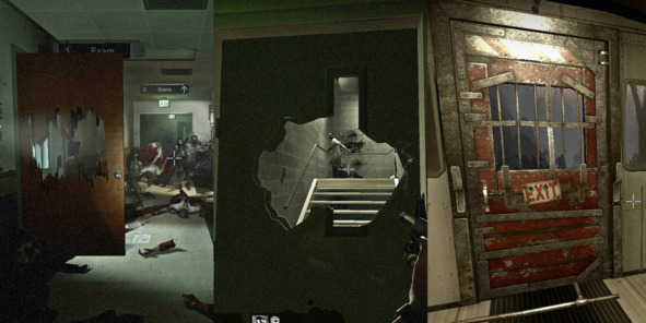 Двери в игре используются в качестве разрушаемых динамических препятствий, временно удерживающих толпы зомби. Окошки и дыры в полуразрушенных дверях по своей высоте идеально подходят для отстрела монстров из положения стоя.