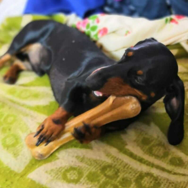 Живет у нас такса, кличка Сема, с такой кличкой она нам досталась от прежних хозяев. Да, Сема отказник, как их называют, прежние хозяева не выкинули его на улицу, они опубликовали объявление типа отдам бесплатно, оно попало к нам и мы его забрали, с этим ему повезло. Сколько их, несчастных, выброшенных на улицу, когда хозяин или дите наигрались живой игрушкой, оказались на улице либо в мусорном баке, убитые бывшим хозяином, что тоже не редкость. Наш Сема приехал к нам. По своему характеру таксы можно отнести к разряду зловредных собак, злопамятных и самых непредсказуемых, к тому же еще самых злых, но в тоже время и самых, наверное, преданных, самых ласковых собак. Может я и ошибаюсь, но именно таким оказался наш Сема. Самое первое, что он сделал на зло мне, это разгрыз мне тапочки, после того, как я его отругал за то, что лезет на нашу кровать, он спустился на пол и на хозяин, получи, причем разгрыз основательно, наверняка, чтоб утром одеть было нечего. Пришлось поутру залазить в компьютер, находить раздел Таксы. Воспитание. и учиться, как себя с ним вести. Да, забыл написать, попал он к нам в возрасте уже двух лет. Как оказалось, забирала его жена, она попала автоматически в его память самой любимой, а тут я мало того что его отругал, я и на жену прикрикнул, за то что за него заступалась. Да, вот так он раз и навсегда показал нам обоим, что к нам в дом пришла не просто собака, а абсолютно все понимающее существо . Как в дальнейшем оказалось, этот симпатяга парень понимал абсолютно все, только что не мог говорить. Но вот показать мог тоже все, например зайдет с улицы, с прогулки, а есть нечего, миска пустая, сядет рядом и тявкнет. Спрашиваешь в чем дело? Носом в тарелку сунется и на тебя смотрит, мол, жрать то дадут нет? Если с первого раза не понял, то носом тарелку пихнет и погромче, чтоб услышали. В общем собака умная и с выдумкой. Так вот я отругал и получил достойную, по его мнению, кару. Ну что ж, пришлось покупать новые тапочки. Следующим шагом стало показать нам свои умения. Стал он лезти под шкафы, холодильник и стиралку, нюхает и фыркает, нюхает и фыркает. Мы не могли понять в чем дело, пока он на огороде что ли не поймал мышку, задавил и домой принес, положил у шкафа, где он нюхал всегда, мол пахнет у вас тут, непорядок. И оказалось потом, что он еще не хуже кота ловит этих самых мышей и крыс, чем подтвердил свое звание охотничьей собаки. Эта порода была и выведена как охотничья, только норная, по норам охотиться, на норных обитателей. Что интересно, с ним играешь с мячиком, кольцом резиновым, если взял в рот и зубы стиснул, все, даже не пытайся отобрать, можешь изо рта вытащить только вместе с зубами. И сил разжать зубы надо очень много. Вот что значит охотник по норам, он же зверька из норы должен сам вытащить, потому и прикус такой мощный. Ну вот так и стал Сема жить у нас.