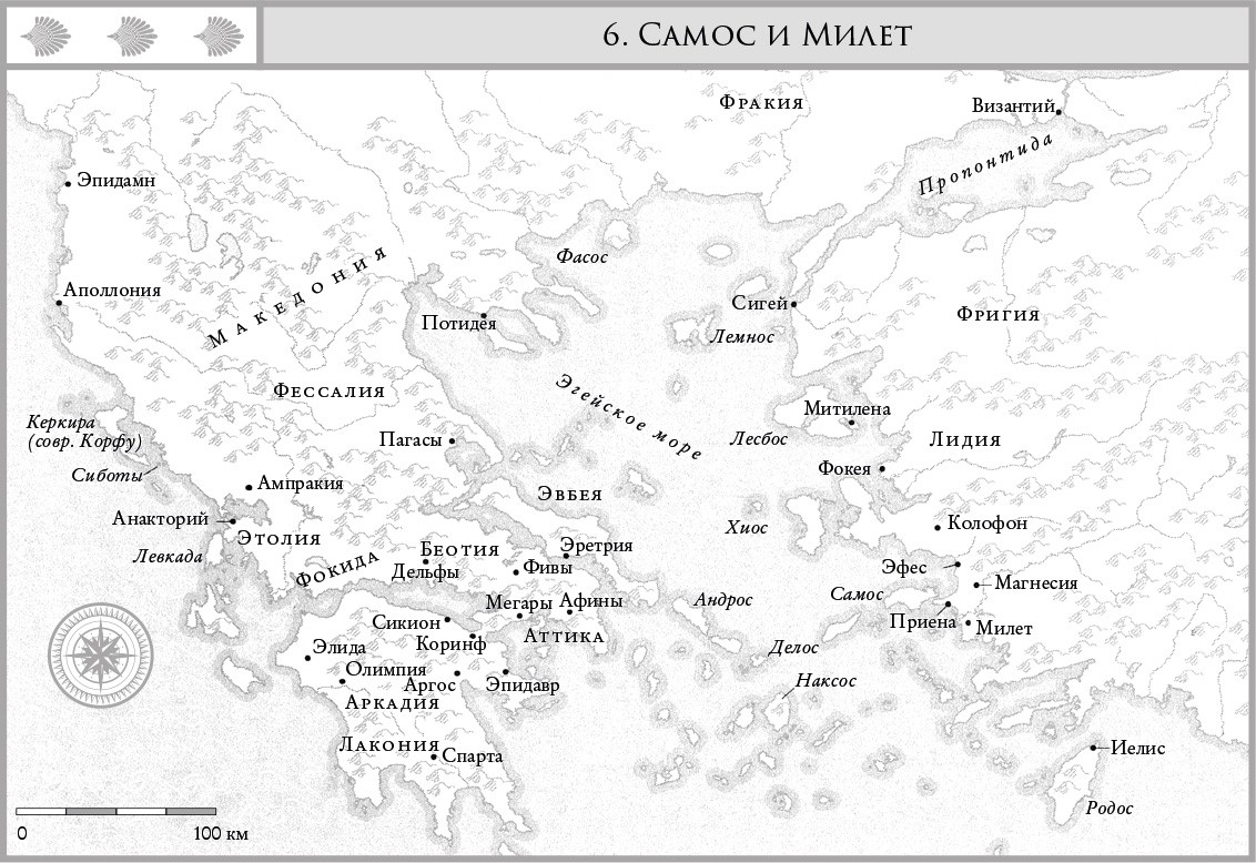 Летом 440 г. до н. э. между Самосом и Милетом вспыхнула война за контроль над расположенным между ними городом Приеной (карта 6). Остров Самос был автономным, являлся одним из основателей Делосского союза и был самым могущественным из трех союзников, которые не вносили плату в казну и имели собственный флот. Милет также был одним из первых членов союза, но он дважды восставал, за что его подчинили, лишили флота, вынудили платить дань и принять демократический строй. Когда милетцы обратились за помощью, афиняне не могли остаться в стороне и позволить могущественному члену союза навязать свою волю беззащитному. Самосцы, однако, отказались от третейского суда со стороны афинян, которые, в свою очередь, не могли проигнорировать этот вызов их лидерству и авторитету. Перикл сам повел флот против Самоса, заменил правившую там олигархию демократическим правительством, стребовал внушительную компенсацию убытков, взял заложников как гарант хорошего поведения и оставил афинский гарнизон для охраны острова.