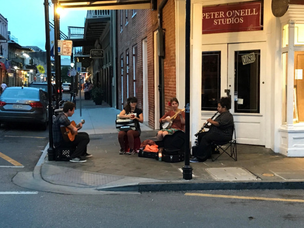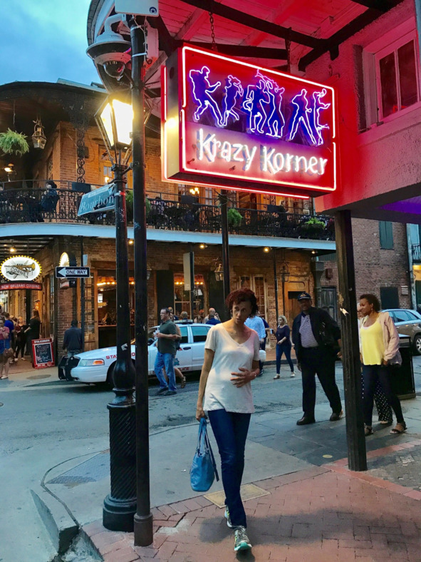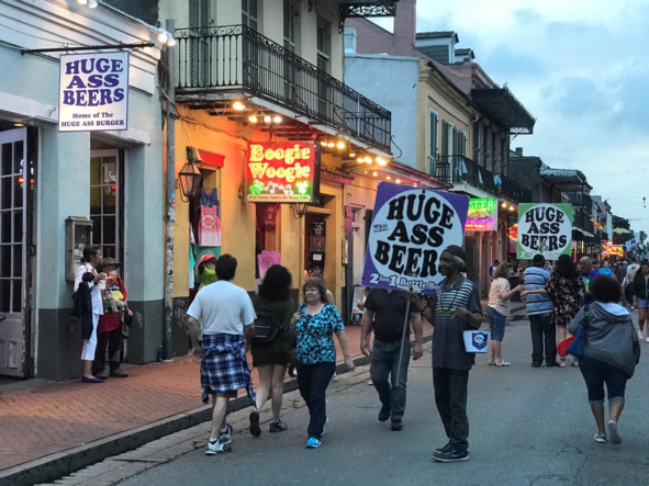 Повсюду музыканты, мимы, художники. Черный дяденька стоит с рекламой пива «Большая жопа». К пиву предлагаются еще и одноименные бургеры. В магазине продаются передники с надписями «Не вынуждай меня травить твою еду» и «Буду готовить ради секса». Везде в большом количестве куклы вуду и объявления о джазовых похоронах.