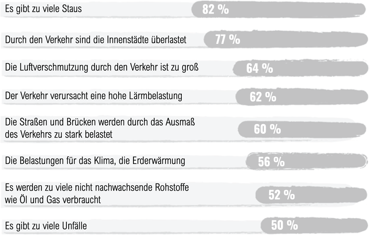 Nun zur Mobilität, also wie die Menschen heute unterwegs sind und wie Waren und Güter transportiert werden: Was sind in Ihren Augen die größten Probleme, die dadurch verursacht werden?