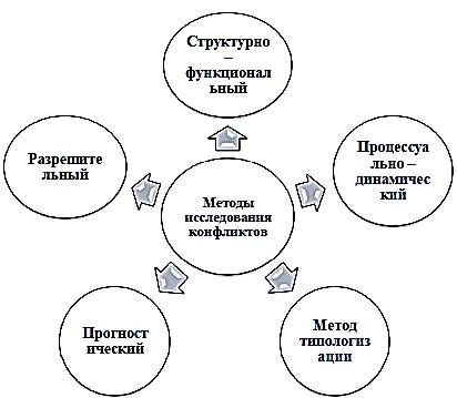 Структурно–функциональный метод – помогает выявить основные элементы конфликтного взаимодействия, определить роль каждого из них. Для структурного подхода характерно рассмотрение явления в статике, как находящегося в состоянии покоя.