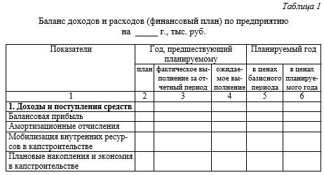 Финансовый план предприятия составляется в виде баланса доходов и расходов, а также расчетных форм для определения статей баланса.
