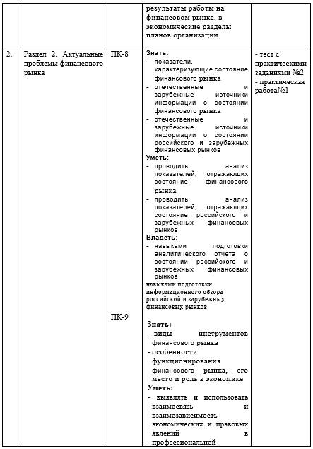 Фонд оценочных средств дисциплины «Финансовые рынки»