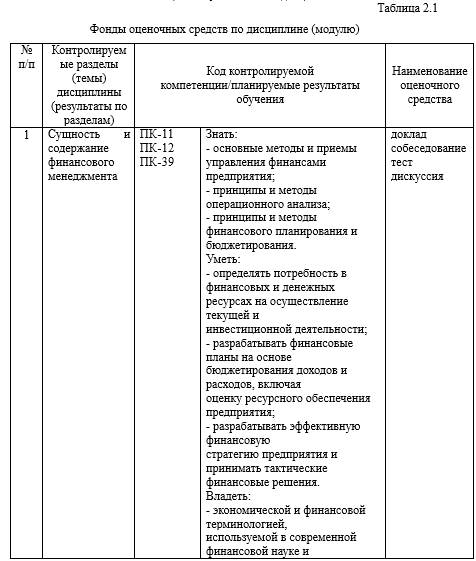 Фонд оценочных средств дисциплины «Финансовый менеджмент»