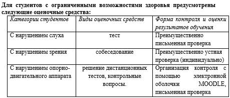 Студентам с ограниченными возможностями здоровья увеличивается время на подготовку ответов к зачету, разрешается готовить ответы с использованием дистанционных образовательных технологий.