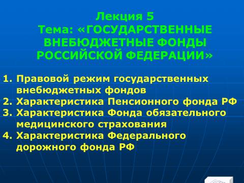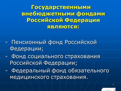 Тема №5 «ГОСУДАРСТВЕННЫЕ ВНЕБЮДЖЕТНЫЕ ФОНДЫ РОССИЙСКОЙ ФЕДЕРАЦИИ»