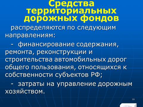 Вопрос 4. Средства территориальных дорожных фондов распределяются по следующим направлениям: