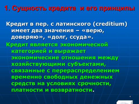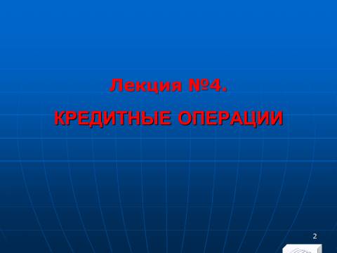 Тема № 4. «КРЕДИТНЫЕ ОПЕРАЦИИ»