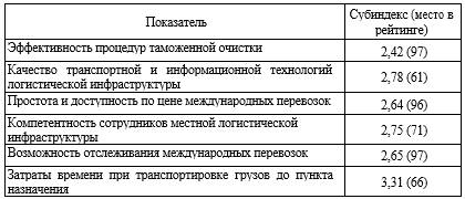 Таблица 1.5 – Logistic Performance Index России в 2018 году