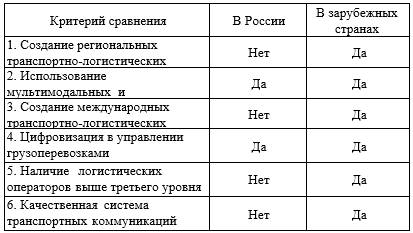 Таблица 1.6 – Сравнение транспортной логистики в России и за рубежом