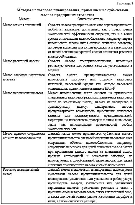 В этой связи авторы предлагают в Концепции развития налогообложения включить понятие и виды налогового планирования, что позволит субъектам малого предпринимательства законно использовать налоговое планирование, оценивать виды налогового планирования применительно к той или иной ситуации. Также субъекты малого предпринимательства могут использовать методы налогообложения для целей налогового планирования.