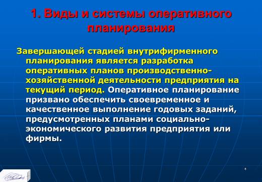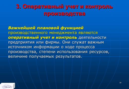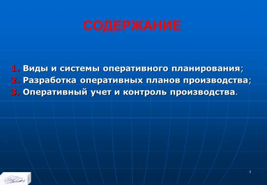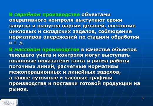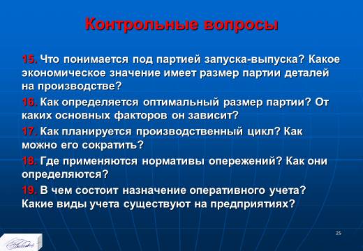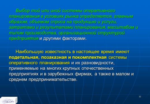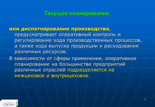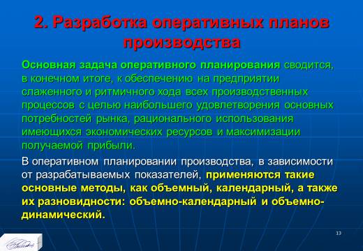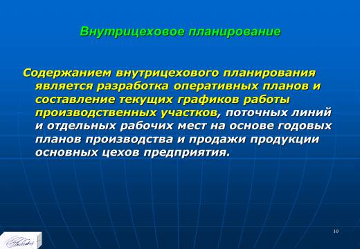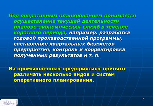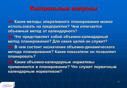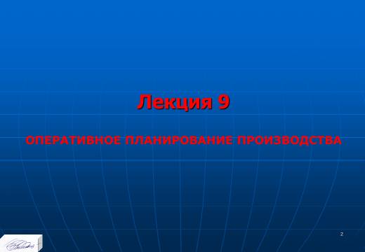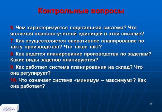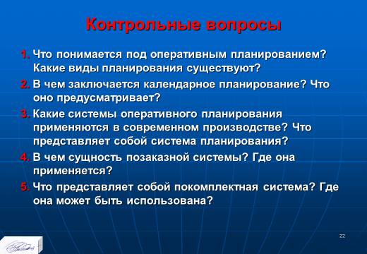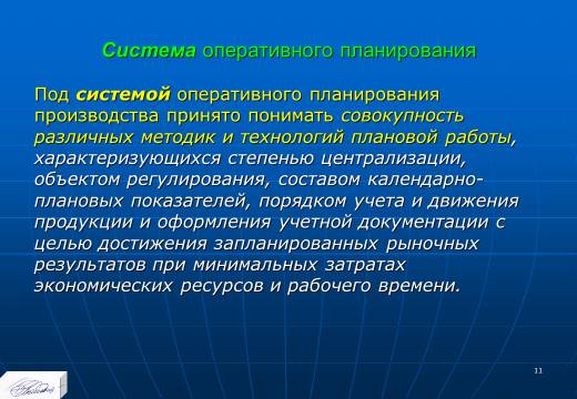 «Оперативное планирование производства» лекция в слайдах с тестами