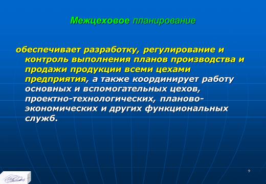 Тема №9 «ОПЕРАТИВНОЕ ПЛАНИРОВАНИЕ ПРОИЗВОДСТВА»