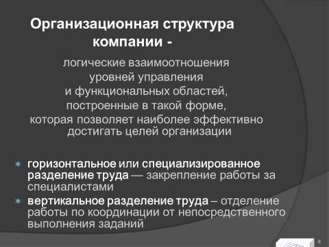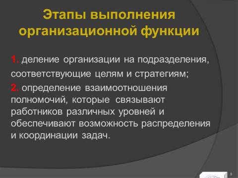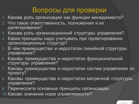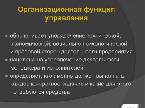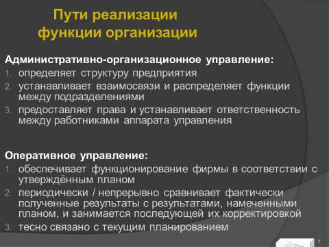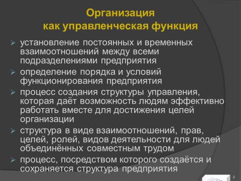 Организация как функция управления. Лекция в слайдах, тестах и ответах