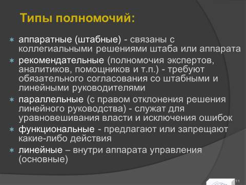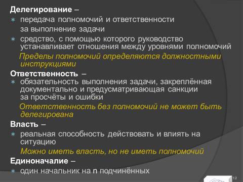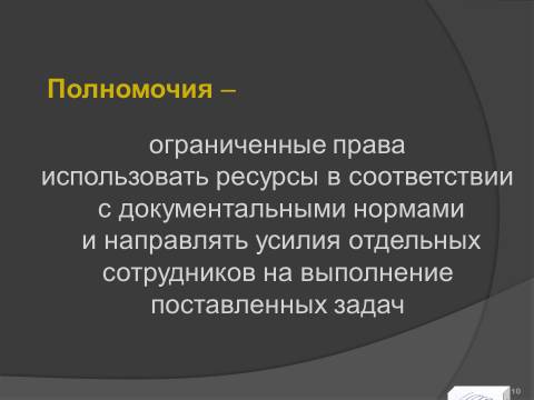 Власть, основанная на праве человека руководить другими в силу соответствующего положения в организации: