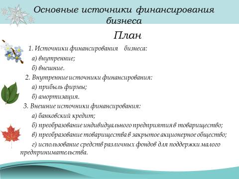 Основные источники финансирования бизнеса. Лекция, темы рефератов и курсовых работ для «ТФКД»