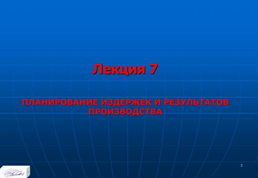 «Планирование издержек и результатов производства» лекция в слайдах с тестами